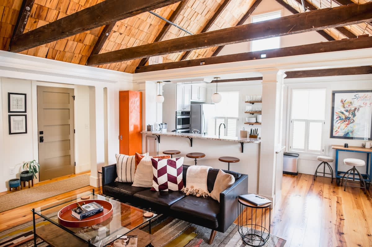 “This place is awesome. Within walking distance to all the fun in downtown without being amongst the chaos! Beautiful home and beautiful touches. Very unique space. Spent a lot of time on that porch and cooking in the stunning kitchen.”